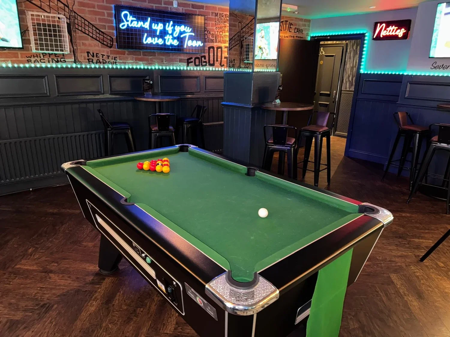 Drinkers can immerse themselves in Geordie culture at Newcastle’s best sports bar. The bar features Newcastle-inspired décor, including slang phrases and a 'Hollywood Walk of Fame' with stars dedicated to local icons like Sir Bobby Robson and Alan Shearer. Customers can enjoy live music from local artists while savouring bar bites like spicy wings, loaded fries, and pizzas.